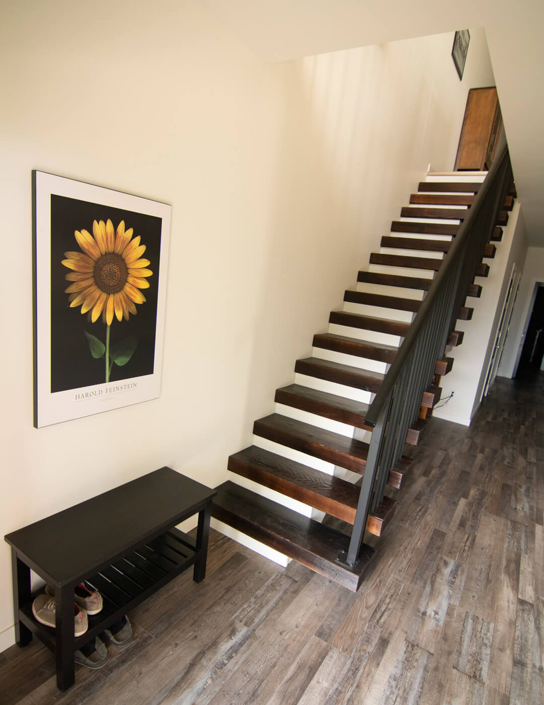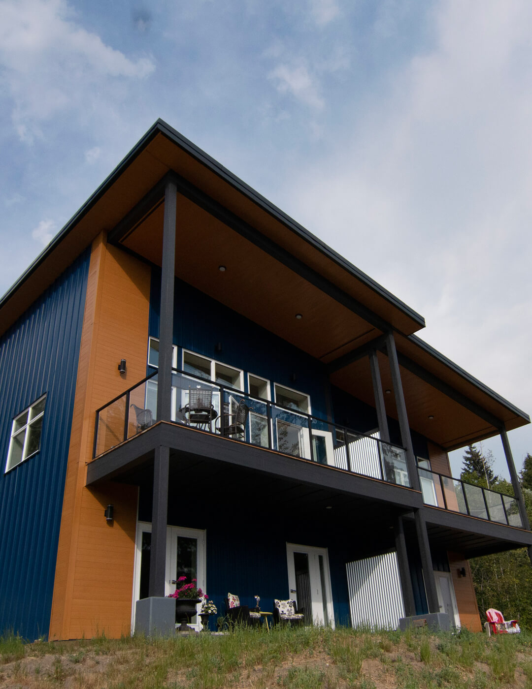 Complete custom home build construction for this downtown Revelstoke property in inclement weather during off-season construction. Residential construction services performed included foundation excavation and grading, foundation walls and piers, exterior and interior framing, insulation, window installation, HVAC, exterior cladding, balconies, roofing, stairs, flooring and tiling, bathrooms, kitchen, and all interior/exterior finishing.
